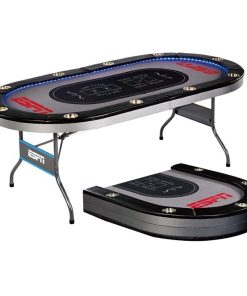 ESPN 10 Player Premium Foldable Poker Table with In-Laid LED Lights, Gray