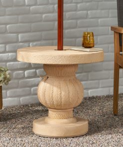 Speakes Outdoor Cast Stone Umbrella Holder Side Table