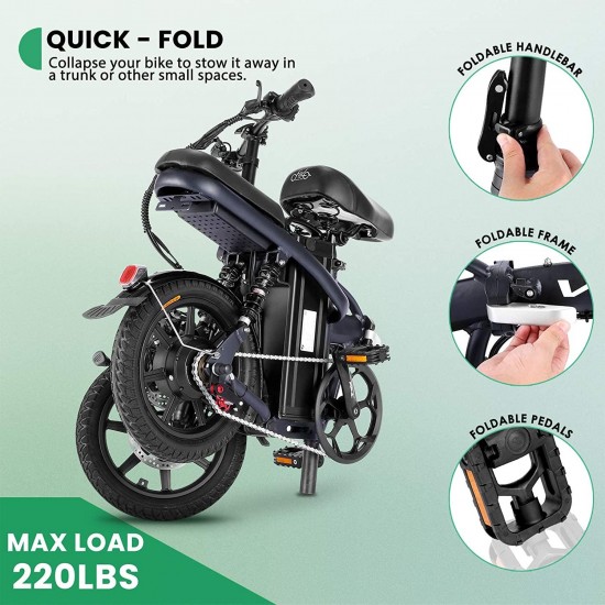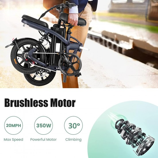 14″ Folding Electric Bike for Adults, 350W Motor Ebike, with Removable 48V 20Ah Lithium-Ion Battery, Adults Electric Bicycle for Daily Cruises, Commutes