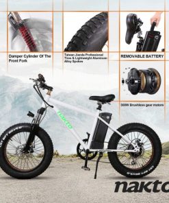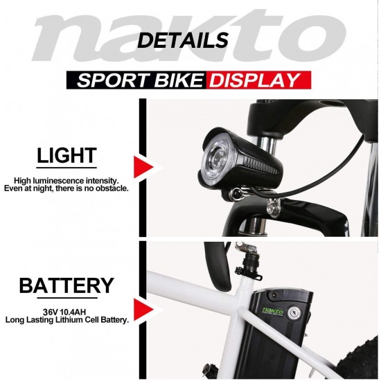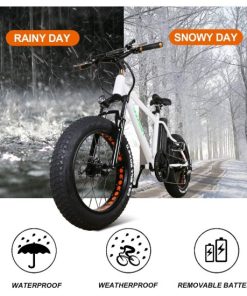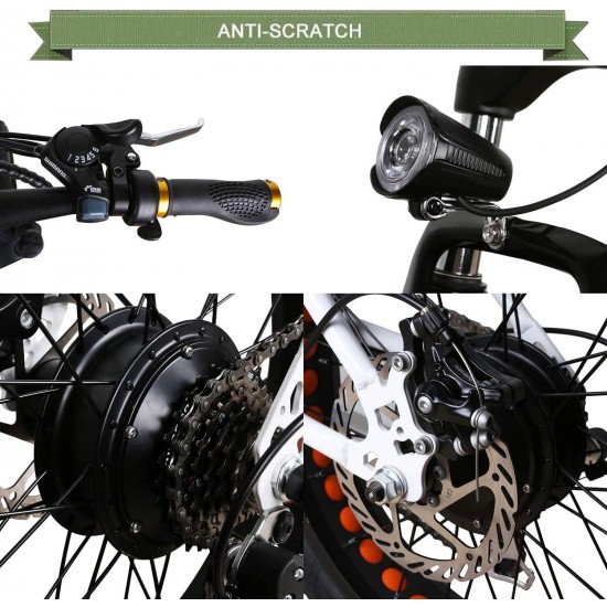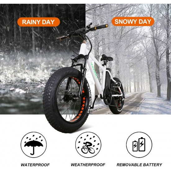20″ 300W Fat Tire Electric Bicycles Snow Beach Mountain Bike 6 Speed Gear E-Bike with Removable Waterproof Large Capacity 36V10A Lithium Battery and Battery Charger Electric Bike