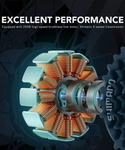 - EXCELLENT PERFORMANCE: Equipped with 250W high speed brushless hub motor, Shimano 6-speed derailleur, a fully charged 36V Lithium ion battery lasts up to 25 miles. Double disc brake system with short braking distance is adopted.