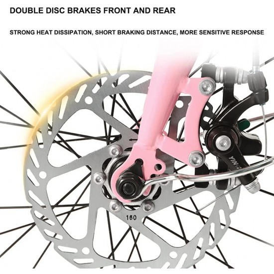 - ★ 【High-quality brake system】 The bicycle adopts front and rear double brake system, which has good braking performance and shortened braking distance. You can brake at any time and brake quickly to give you more security.