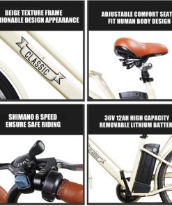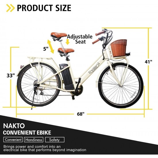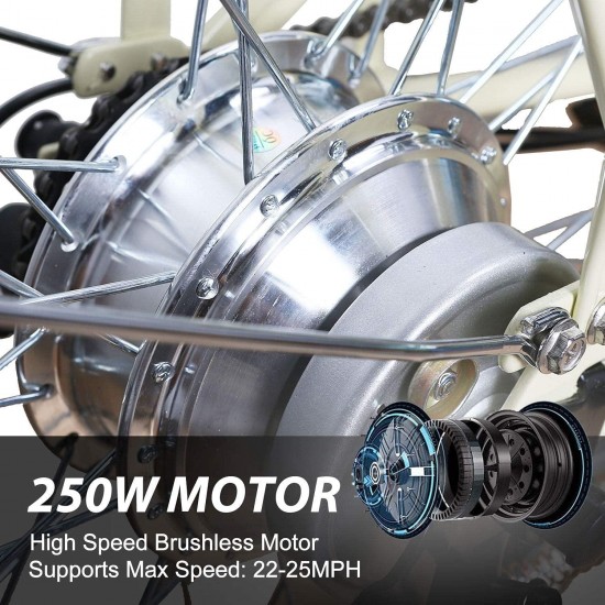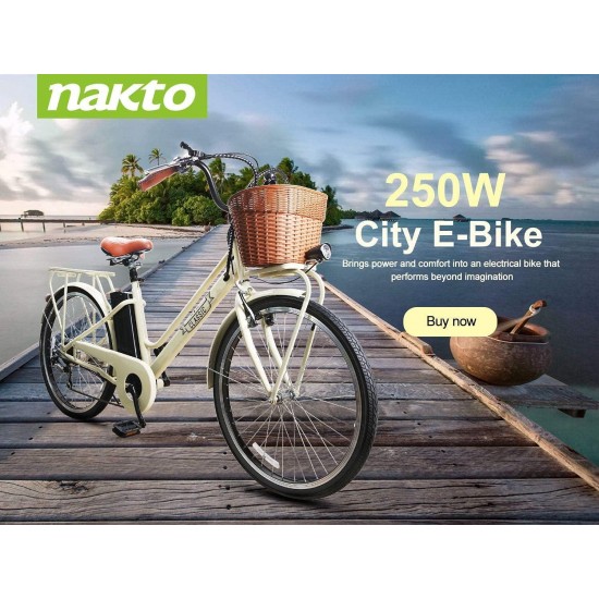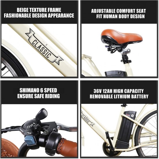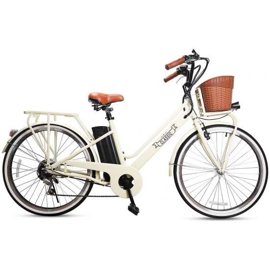 26″ Adult Electric Bicycle 250W Ebike for Female City Electric Bike with Bakset and Removable 36V12A Large Capacity Battery