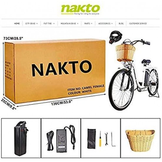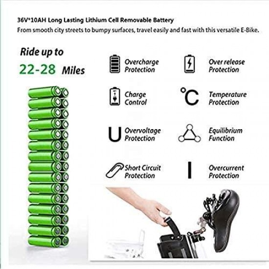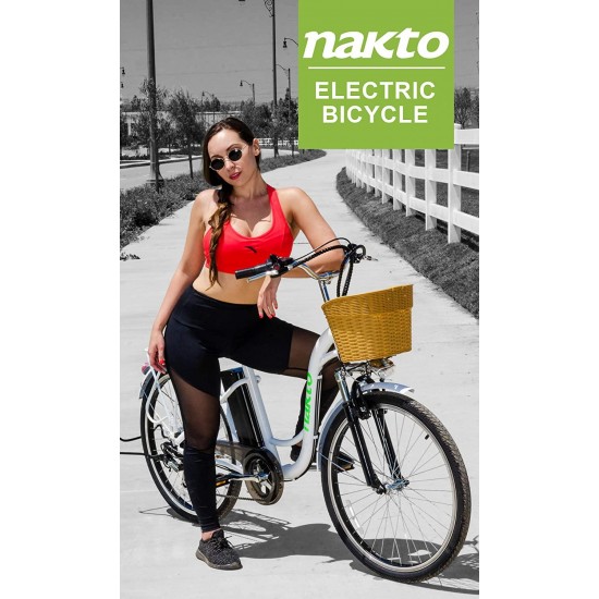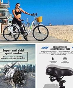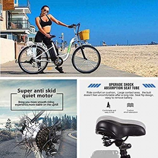 26″ Adult Electric Bicycle City Sporting 6-Speed Ebike with Removable 36V Lithium Battery for Women Men