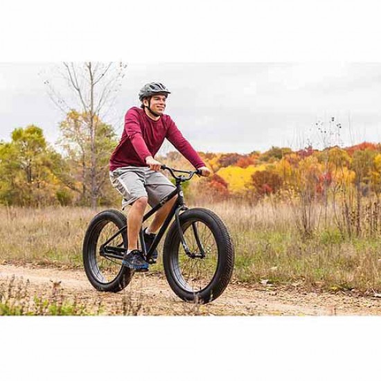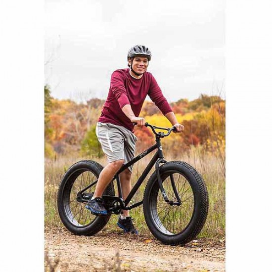The 26-Inch Mongoose Beast Men’s All-Terrain Fat Tire Mountain Bike is as agile as it is resilient. It is built with a rigid steel cruiser frame along with an alloy four-inch-wide wheel set. It also features supersized 4.25-inch knobby tires that can take on any terrain while maintaining stability and traction. This Mongoose mountain bike is -speed and equipped with and beach cruiser pedals and rear coaster brakes. Its ATB handlebars are low-rise and its seat is padded for extra comfort. Cruiser geometry offers a convenient and athletic riding position. This men’s mountain bike is available in multiple colors. Some assembly is required.Great news! If you select Site to Store delivery, you can call your local store as complimentary assembly may be offered at that location.