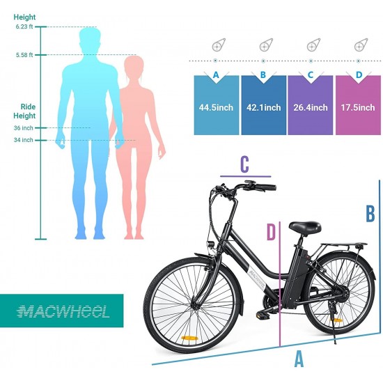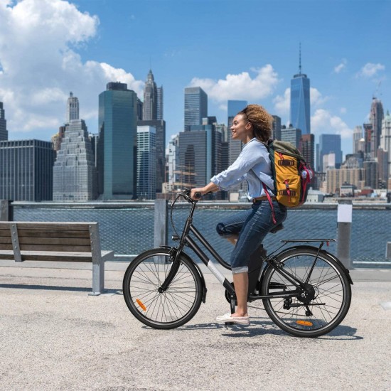 26″ Electric Bike, Removable 36V/10Ah Lithium-ion Battery, Max Speed 15.5MPH, 6/7-Speed Gear Electric Commuter Bike with Throttle & Pedal Assist