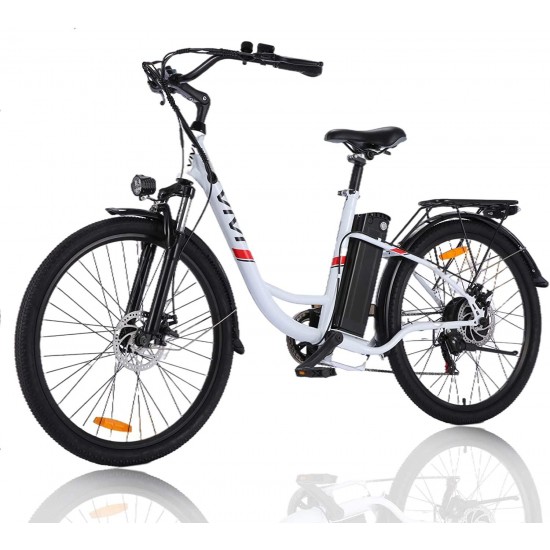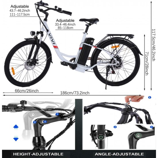 - 【High Quality】: VIVI electric city bicycle adopts lightweight and durable aluminum alloy frame, and the whole bike adopts waterproof cable, which can not only ride in rainy or snowy days, but also the detachable interface of waterproof cable makes replacement of parts more convenient.