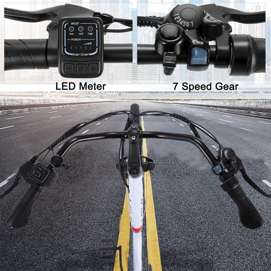 - 【Shimano 7 Speed Gear】: Shimano 7-speed transmission gear increases the climbing ability and can smoothly change the speed as needed during riding. The horn, bright LED headlights and rear brake lights ensure safe riding at night. Front and rear mechanical disc brakes can achieve high performance in all weather conditions.