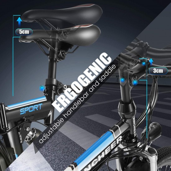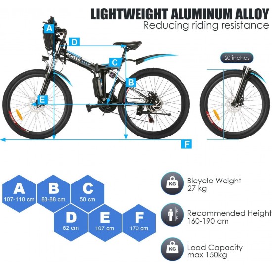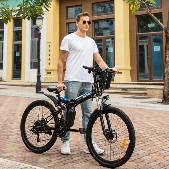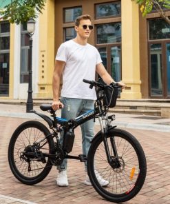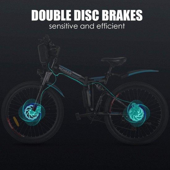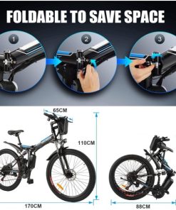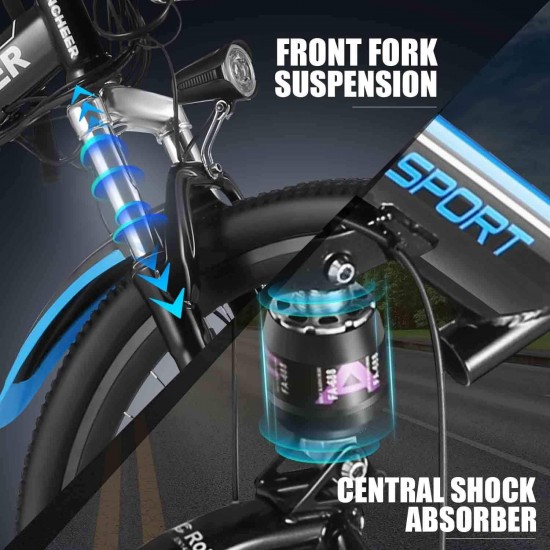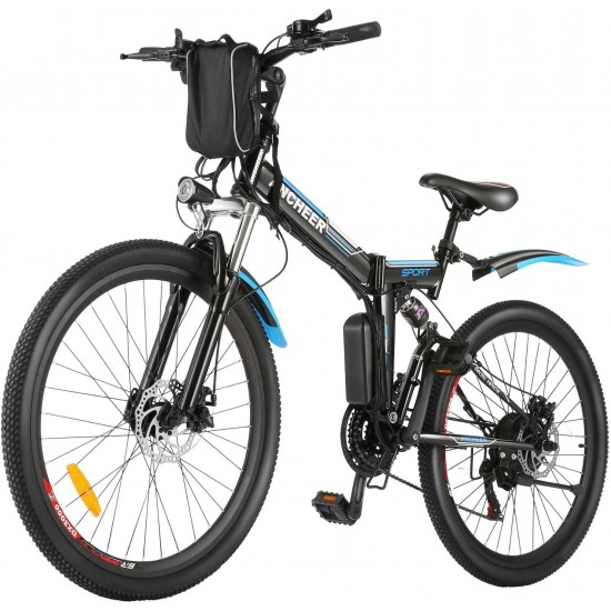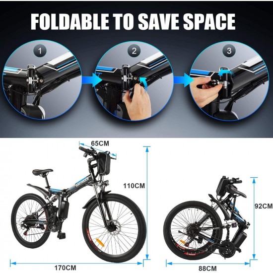 26” Folding Electric Bike, Commuting Ebike Electric Mountain Bike with 36V 8Ah Lithium-Ion Battery, Premium Full Suspension and 21 Speed Gears