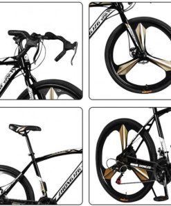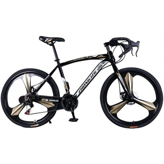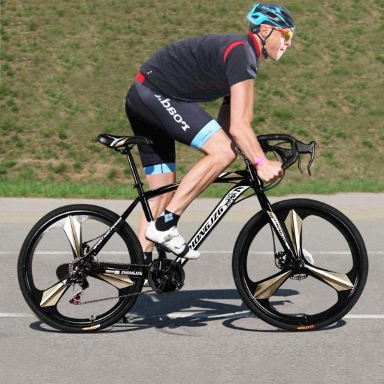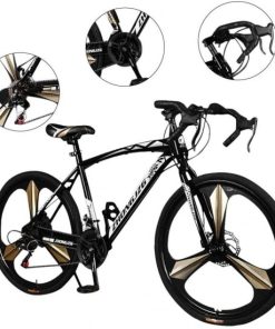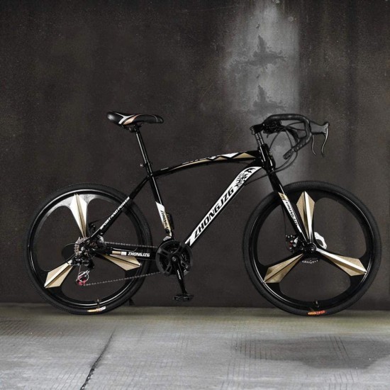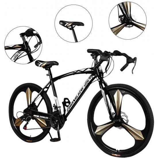 26in Road Bikes,21-Speed Disc Brakes Commuters Lightweight Aluminum Frame Full Suspension Road Bike, with 700c Tire (Black)