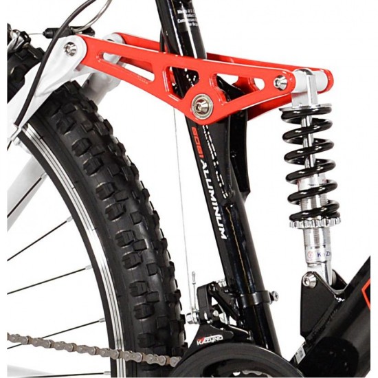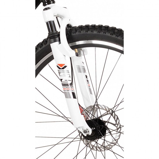 V2100 from Genesis Bicycles is just what the doctor ordered for on and offroad exercise, and fun. Aluminum four bar linkage suspension frame with a strong spring loaded suspension fork, front disc brakes, rear linear pull handbrakes, and a 21 speed drivetrain with Revo twist shifters from Shimano are the vitals. All this set up with a comfortable riding position featuring a padded saddle and rise handlebars will keep you out of the chiropractor’s office. Live long and roost, sir.