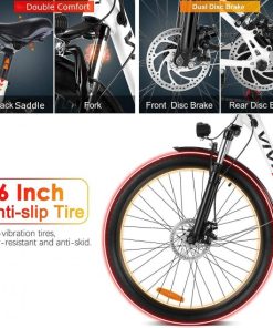 - 【Safe & Effective】Vivi electric bike is fully functional with front light, rear light with brake light function and bell for safe night riding; 7-speed Shimano system provides accurate, smooth shifting with a black steel chainstay guard; Dual disc brakes with motor inhibitor and brake power off system on the brake handle provide great braking control.