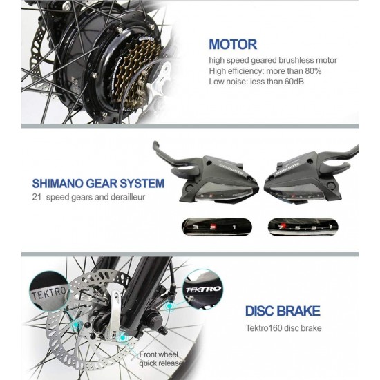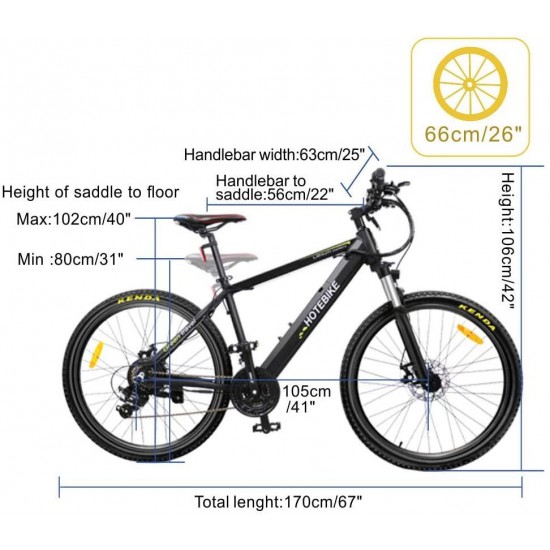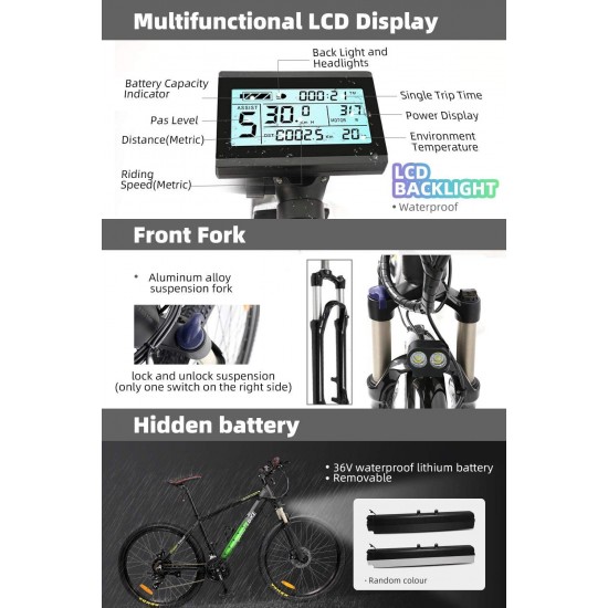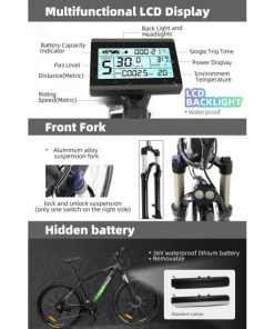 36V 350w Ebike Electric Bike 26″ E Bikes for Adults Aluminum Alloy Mountain Bicycle with 21 Speed Shift Removable Hidden Battery 160 disc Brake