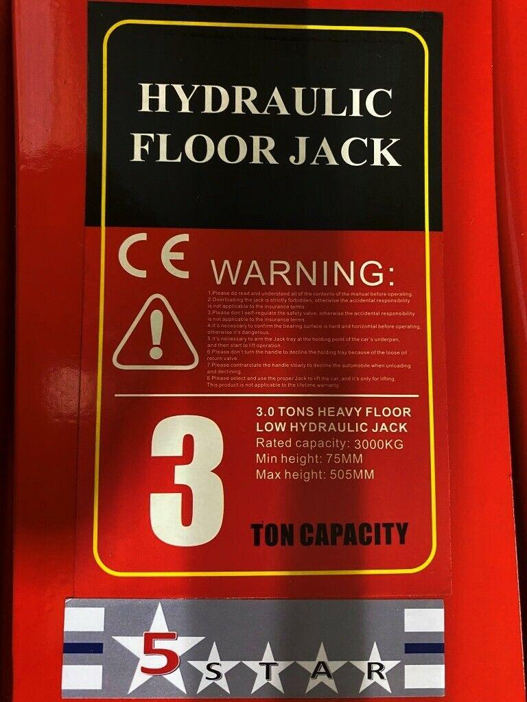 5Star 3 Ton Heavy Duty Steel Ultra Low Profile Floor Jack Quick Pump Lifting Car