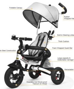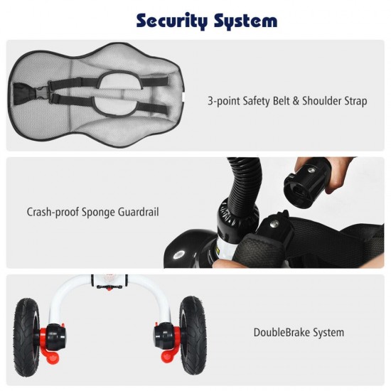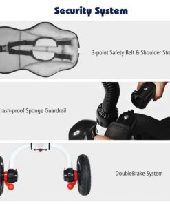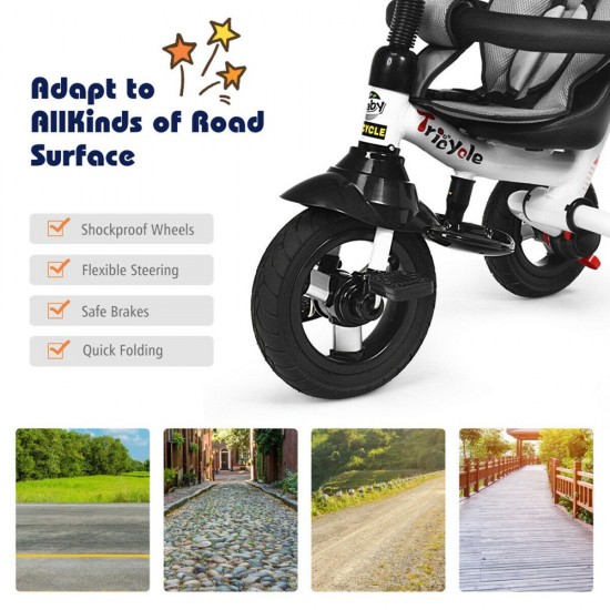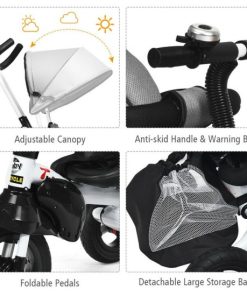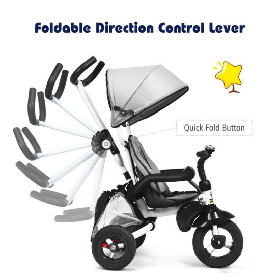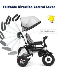 This baby tricycle is perfect for your growing children aged from 1-5 years old and conveniently folds up for easy storage and transportation. It offers 4 ways to ride and easily converts from a stroller to a steering tricycle, learning-to-ride- tricycle, and finally a classic tricycle. This baby tricycle has a parent handle which can be used for steering. And adjustable pedals to prevent baby’s feet from being hit by front wheel. It features many secure s, such as a safety belt to keep your little one safe, a padded handrail which is crash-proof and removable for baby to get on and off easily. It is an ideal present for your kids and they will love to ride this tricycle!
