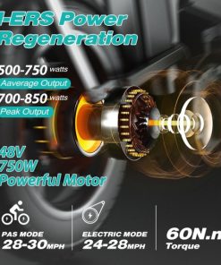 - [Powerful Motor & Battery] With 48V 750W brushless gear motor, it can easily assist you to travel at 28MPH. With 48V/12.8A lithium removable battery, the mileage can be more than 25 miles, and you can charge the battery in the frame or alone when you take it out.