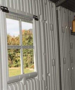 | Windows | One (1) 16.5 in. W x 16.5 in. H Polycarbonate Window – Opens Half-Way |