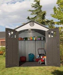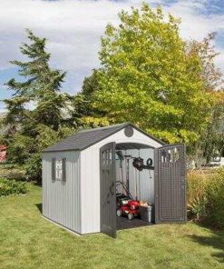 8-foot wide Outdoor Storage Sheds are the perfect solution to your storage needs. Built with durable, dual-wall high-density polyethylene, our sheds are steel-reinforced and low-maintenance. With various features including shatter proof windows, skylights, custom shelving, and much more, a Shed is the perfect addition to your backyard.