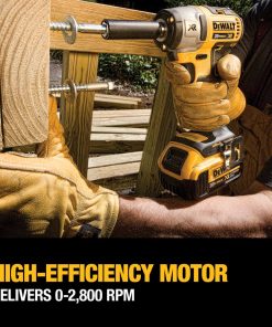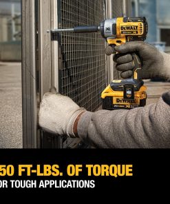 The 20V MAX* XR 3/8-Inch Compact Impact Wrench Kit from DEWALT? helps you to effortlessly tighten and remove nuts and bolts. It comes with a pair of batteries and a fast charger that you can use to run all of the other tools in the 20V Max line for more versatile performance. This 20V Max XR 3/8-inch compact impact wrench kit has a variable-speed trigger so you can control your work pace for more efficient operation. The tool puts out up to 150 foot-pounds of torque to make quick work of hard projects. Its brushless motor reduces the amount of maintenance that the cordless impact wrench requires and efficiently transfers power to the bit. The ergonomic grip makes it comfortable to use.