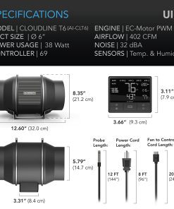 AC Infinity CLOUDLINE T6, Quiet 6” Inline Duct Fan with Temperature Humidity Controller, Bluetooth App – Ventilation Exhaust Fan for Heating Cooling Booster, Grow Tents, Hydroponics