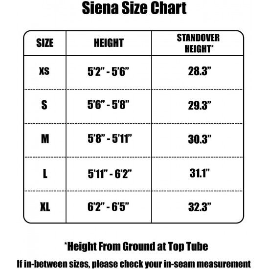 - OPTIMIZED FIT FOR ADDED COMFORT: Compact frame geometry and premium compact handlebars offer increased power and comfort in a sleek package. Every part of the Siena is designed for maximum comfort and efficiency, so you are getting the most out of every ride, whether it is 10 miles or 100 miles