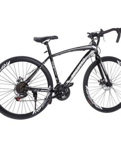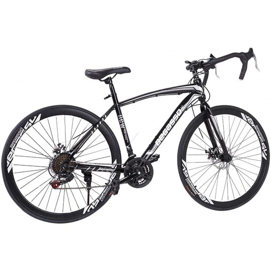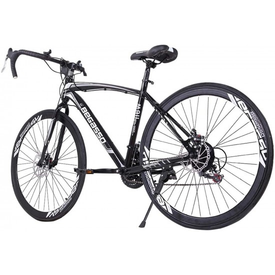Aluminum Road Bike, 21 Speed Disc Brakes Aluminum Frame Road Bicycles Full Suspension Road Bike, 700c Dual Disk Brake Quick Release Racing Bicycles (White/Black)