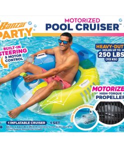 ItFTs party time at the pool with Banzai Motorized Pool Cruiser! This float comes with many cool features. Equipped with a powerful high-torque motor. Comfy oversized inflatable bumper tube ring can easily accommodate up to 250LBS. Banzai Motorized Pool Cruiser is packed with power on demand. Just press the button on the built-in steering and you are on your way. Cruise across the pool with ease. Play a silly game of bumper boats or race a friend to a splashing win. Or just take it easy with a refreshing afternoon float in the comfort of your backyard pool. Built-in cup holder is super convenient. With your favorite beverage in tow£¬ itFTs sure to spice up your Pool Cruiser experience. Recommended for ages 14 years and up.