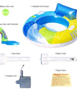 - Included in the package: one inflatable pool cruiser boat£¬ one pipe cover£¬ one battery tube£¬ one battery door lock£¬ one battery door with controller£¬ one propeller unit and one repair patch