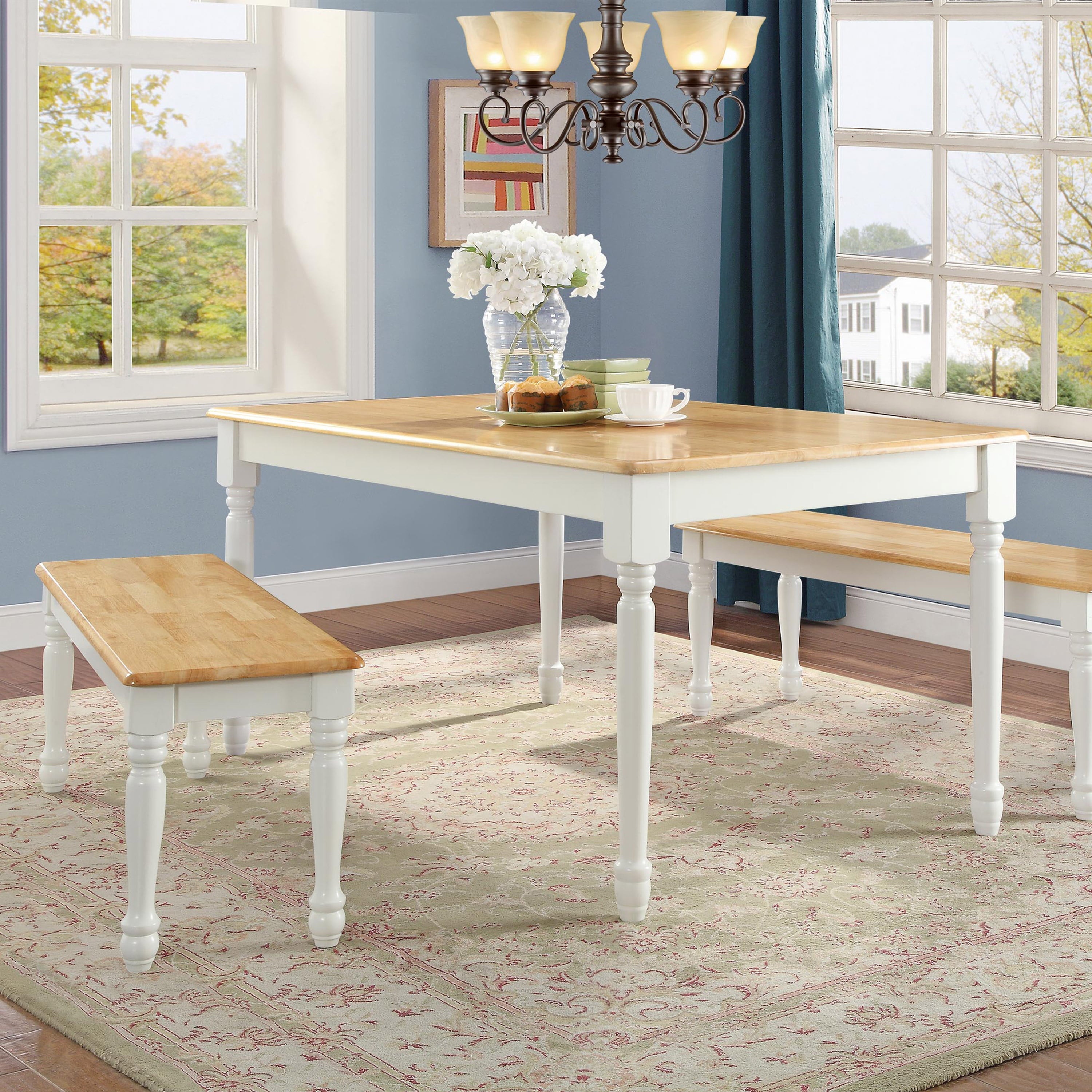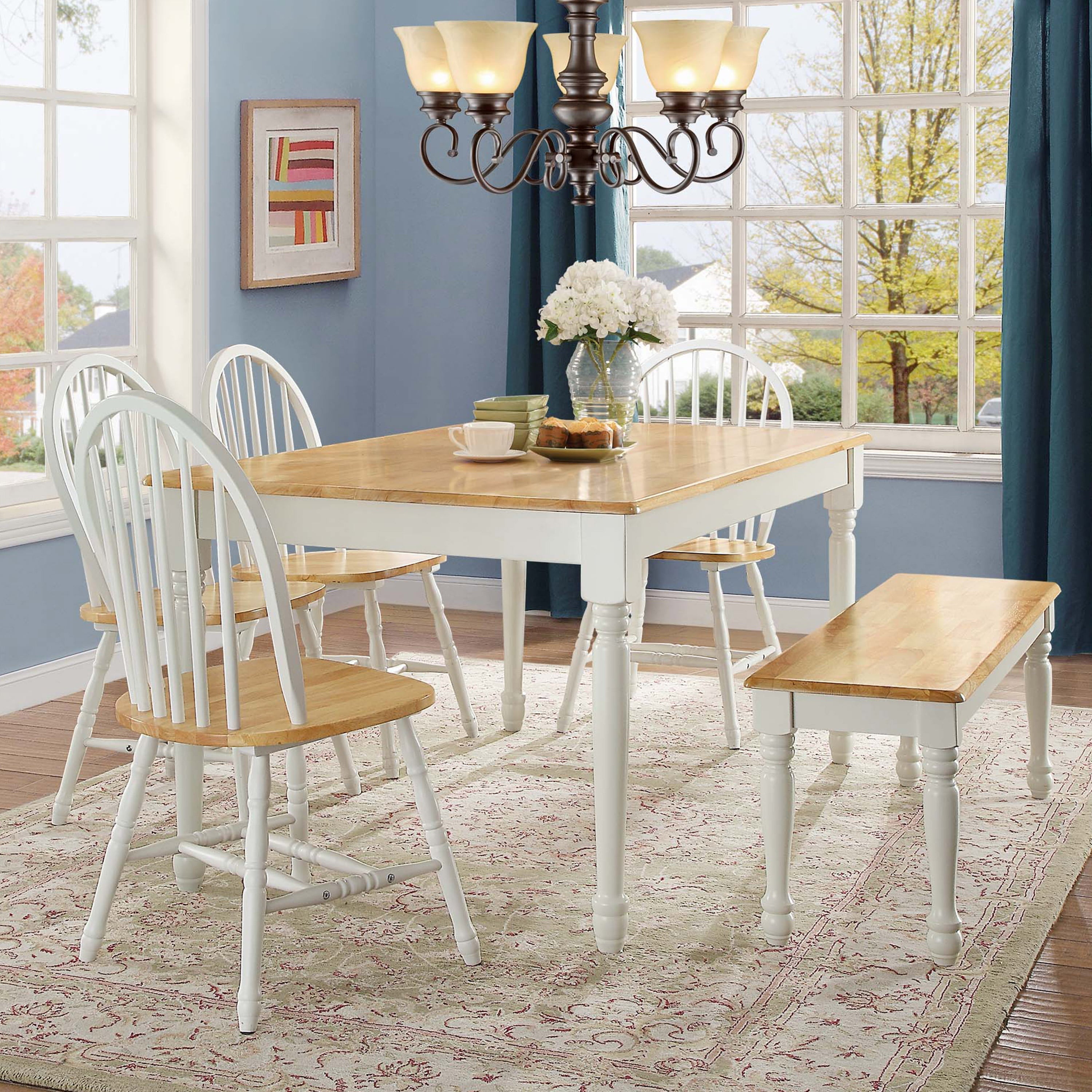 The Better Homes and Gardens Autumn Lane Farmhouse Dining Bench brings refined charm to your home. Its classic antique styling features turned wooden legs and a wooden back finished with a mix of stain and paint for a clean£¬ refined look. It has a sturdy£¬ solid wood seat for daily use that will not break down and can hold a lot of weight. Elegant and stylish£¬ this Better Homes & Gardens bench will look lovely in a variety of rooms and can be used as seating in your kitchen£¬ dining room or breakfast nook£¬ or as a decorative piece in a hallway£¬ study or any other living space. It seats two comfortably£¬ providing extra seating for your existing table£¬ chairs and other benches. Whether your style is modern£¬ elegant£¬ casual or rustic£¬ this bench complements most any furniture and interior decor. You can mix and match this dining room bench with coordinating pieces from the Autumn Lane Farmhouse Collection (sold separately). The included guideline book makes assembly quick and efficient.