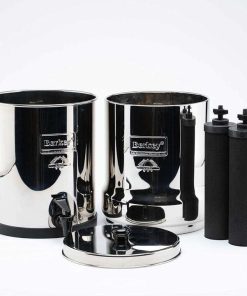 Includes Big Berkey stainless steel housing (Upper, Lower, Lid and spigot etc.), 2 Black Berkey Filters, and 2 Fluoride Elements.