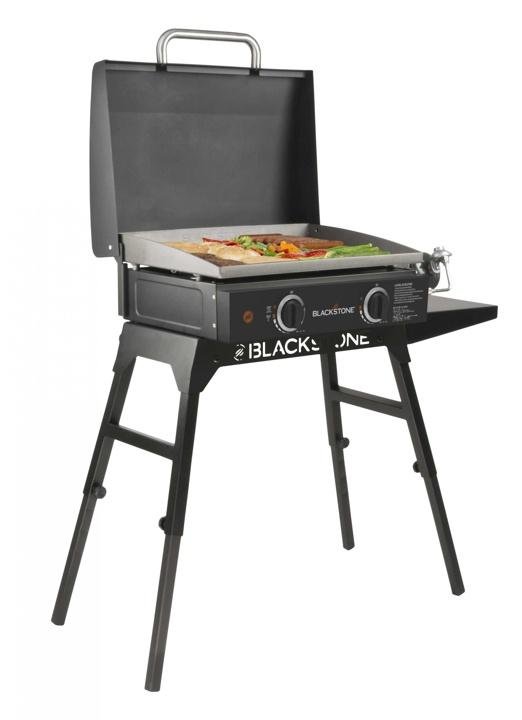 The Blackstone 22∪ Griddle with Hood, Legs and Bulk Adapter Hose is an ideal cooking accessory. Use it to make outdoor grilled meals with ease. It is portable and can be used right on a table or countertop. Included are legs, a hood and a bulk adapter hose that can be used with a 1-pound propane tank to a 20-pound one. This table top griddle is quick and easy to set up. Take it on camping trips, or carry it outside into the yard for a cookout or barbecue. With 330 square inches of cooking space, this unit works well for burgers, hot dogs, steaks, and much more. Dual ※H§ burners provide even heat distribution. It heats up to 24,000 BTUs for fast cooking. The Blackstone 22∪ Griddle with Hood, Legs and Bulk Adapter Hose is easy to clean. Blackstone 22∪ Table Top Griddle with Hood, Legs and Bulk Adapter Hose: 43.6∪ L x 22.5∪ W x 39.7∪ H; 64.5 lbs The 22∪ griddle is quick and easy to clean, taking the hassle out of outdoor cooking 330 sq in of cold-rolled cooking surface with dual &H* burners that produce a total of 24,000 BTUs for fast and even cooking Has a unique rear grease management system for easy cleaning while cooking Portable and easy to set up and take down Also includes a bulk adapter hose, so you can use a quick 1-lb tank or a 20-lb tank easily Blackstone griddle is ideal for camping trips, cookouts and more