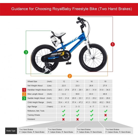 - 5. More size options. 12,14,16,18 Inch available, use our easy to follow size chart, you’ll find a perfect size for your little kids. Note: Please take the kids height into consideration.