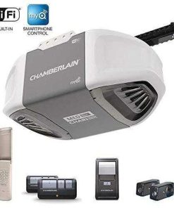 Binding: Tools & Home ImprovementDetails: The Chamberlain C450 is a durable, long-lasting chain drive garage door opener with smart technology that gives you more control and makes managing your home and life easier. Powered by Chamberlain*s Lift Power System, it delivers the highest lifting capacity compared to the ? power class. Built-in Wi-Fi allows you to control your garage door with the Chamberlain myQ App. From a smartphone or tablet, you can get real-time alerts, open, close, and know the status of your garage door and more〞from anywhere. Designed and engineered for safety and security, it includes a dual-function wall control panel, a wireless keypad, and features enhanced Triband technology for superior range, performance, and less interference. The highest level of encryption and monitoring, paired with your home*s ISP and Wi-Fi router firewalls, guard against hacking. Accepts two 100-watt max non-halogen or 26-watt max CFL light bulbs (not included). Designed specifically for 7 foot garage doors – extension kits required for 8 feet and 10 foot doors.Package Dimensions: 26.7 x 13.3 x 8.3 inches