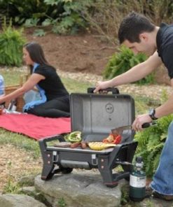Details: Product DescriptionThis traveling grill will cook your food to perfection using Char-broil’s TRU Infrared technology. Its high-impact frame with legs and carry handles makes it easy to take with you. Perfect for tailgating, camping or road trips!Amazon.comYou can grill on the go, and ignite your taste buds anywhere you are hungry, with the Char-Broil Grill2Go X200! This roadworthy powerhouse doesn’t mind getting tossed around; its rugged construction and latching lid are built to survive the adventure; whether that means canyon camping or competitive tailgating. Built-in, push-button ignition requires no batteries to ignite a 9,500 BTU burner powered by a small and easily portable 16.4 oz. disposable LP cylinder, while the no flare-up TRU-Infrared cooking system cooks even in the coldest climates The Char-Broil Grill2Go x200 is a simple and lightweight tabletop grill that enables you to cook your favorite foods while fishing, tailgating, camping, or relaxing at the beach – with the high quality that only Char-Broil TRU Infrared can deliver in a portable grill. The perfectly portable grill weighs less than 20 pounds, but don*t let the size fool you: with 200 square inches of cooking surface, you can grill burgers or hotdogs for more than a carload full of friends! With convenient push-button ignition, this travel grill quickly heats up to grill burgers, chicken, vegetables, and more! The Grill2Go x200 even features a die-cast firebox and aluminum lid built to survive the adventure away from home. The lid is hinged to the rest of the grill to keep things simple when you have limited space but want to cook, the large handle allows you to open and close the lid safely and easily. When it’s time to go, packing up is hassle-free with the securely latching top and dual Cool-Touch heat-resistant handles. Quality rust-resistant and durable steel construction with a black porcelain finish helps to extend the life of your grill – plus, the stainless steel cooking grate is a snap to clean. How TRU-Infrared WorksAll Char-Broil TRU-Infrared grills generate a minimum of 65 percent infrared heat, which is evenly spread across the entire cooking surface to cook food — without drying — at temperatures that range from simmer to sear. Unlike traditional gas grills that use convective heat (hot air) to cook food, Char-Broil’s TRU-Infrared grills limit the hot air flow and use natural, radiant heat to cook food directly without drying. While convective heat destroys food’s moisture barrier, infrared heat penetrates it without drying and locks in natural juices and flavors. Char-Broil’s TRU-Infrared cooking system virtually eliminates flare-ups while producing very even heat (no hot or cold spots). Additional Features Ignition tucked inside right front leg to protect from damage Hood-mounted temperature gauge 200 sq. in. total cooking surfaceStainless steel grilling grate/li> 9,500 BTU main burner Easily converted for use with a 20 lb. tank (sold separately – Char-Broil model 5584623) Grill size: 23.7’W x 15.7’D x 13.6’H Weighs 20 lbs.