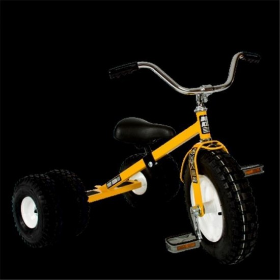 - The Dirt King Child Dually Tricycle adds a new look to the off-road ride by adding two additional knobby, deep tread -filled tires for double the fun. Hand welded and constructed of heavy duty 14 and 16 gauge steel. The Dirt King Child Dually Tricycle comes equipped with all terrain dual pneumatic tires mounted on heavy duty steel rims with 5/8 inch steel ball bearings. The adjustable seat and tilting handle-bars allow the Dirt King Child Dually Tricycle to adapt with your growing youngster