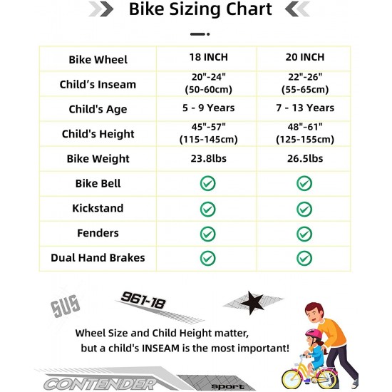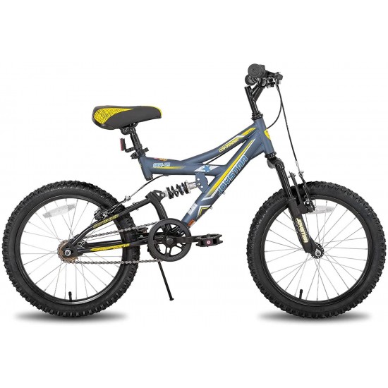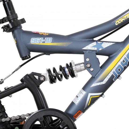 - 2. Ready for Riding! JOYSTAR Contender is ideal for ages 5-9 and a rider height of 44-56 inches; the sleek charcoal gray frame with vibrant colors, the rugged 18-inch tires and full suspension make this single speed bike ready for real riding adventures.