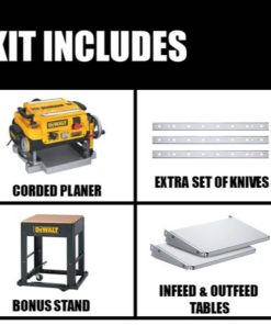 DEWALT 15 Amp 13 in. Corded Heavy-Duty Thickness Planer, (3) Knives, In/Out Feed Tables, and Mobile Thickness Planer Stand DW735XW7350