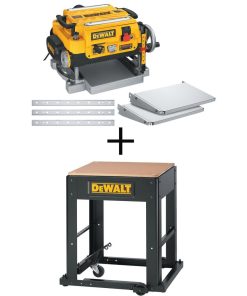 DEWALT 15 Amp 13 in. Corded Heavy-Duty Thickness Planer, (3) Knives, In/Out Feed Tables, and Mobile Thickness Planer Stand DW735XW7350
