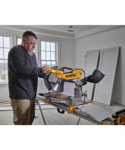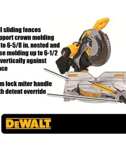 The DWS716 12 in. Double-Bevel Compound Miter Saw is powered by a 15 Amp motor that drives 3£¬800 RPM to deliver extended power and durability. This saw features a stainless steel miter detent plate with 14 positive stops and cam miter lock system that provides repeatable accuracy and durability with easy adjustments. Tall sliding fences support 6-1/2 in. of base molding vertically and 6-5/8 in. of crown molding vertically nested. High efficiency dust duct is concentrated at the point of cut for maximum collection. Lightweight design and built-in carry handle for portability.