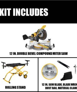 DEWALT 15 Amp Corded 12 in. Double Bevel Sliding Compound Miter Saw and 32-1/2 in. x 60 in. Rolling Miter Saw Stand DWS779WDWX726