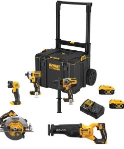This 20V MAX* Brushless 5-tool combo kit includes one ? in. hammer drill£¬ reciprocating saw£¬ and 7-1/4 in. circular saw all equipped with FLEXVOLT ADVANTAGE tool technology. This kit also includes one XR Brushless Impact Driver£¬ portable LED work light£¬ two 20V MAX* 4.0Ah batteries£¬ charger£¬ and TOUGHSYSTEM 2.0 rolling storage. The FLEXVOLT ADVANTAGE tools are all tool connect chip ready (DCE042 sold separately) for easy asset management on the job and are compatible with all 20V MAX* batteries.