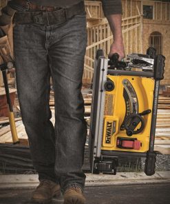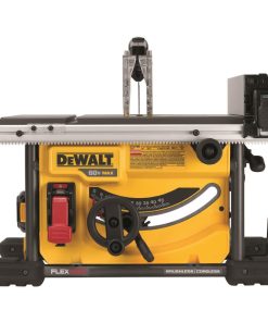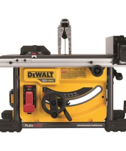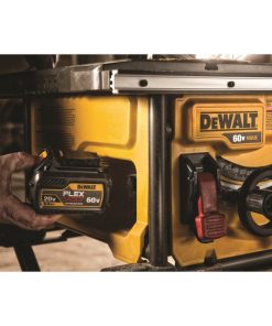 The DEWALT? FLEXVOLT? 60V Table Saw 1 Battery Kit contains the items necessary for cutting through common materials quickly and easily. This saw uses the power of a 60V FlexVolt battery£¬ which improves runtime while also making the unit portable. With its rack and pinion fence rails£¬ the FlexVolt 60V Max 8-1/4-inch table saw kit lets you avoid lengthy adjustments to fences£¬ making the task fast and easy. The saw boasts a max rip of 24 inches£¬ which is ideal for OSB and 4×8 plywood sheets. Save time and increase productivity with its tool-free guarding adjustment. If your electricity goes out while the saw is in the ‘on’ position£¬ the Power-Loss Reset feature prevents it from starting automatically when the electricity comes back on. For convenience£¬ onboard storage is available for fences£¬ guards and more. The table for this saw is aluminum for durability. It also features a special coating that helps reduce friction while cutting. The table saw fence extension kit has a metal roll cage base£¬ which offers excellent durability and stability.