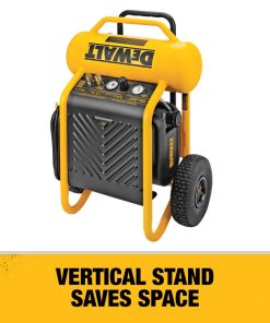 The DEWALT?£¬ D55146£¬ heavy duty 4.5 Gallon£¬ 225-PSI wheeled compressor is an oil-free compressor that delivers 5.0 CFM at 90-PSI and 10-in pneumatic wheels that allow for easy transportation around the jobsite. This compressor is perfect for supporting roofing and framing nailers as well as multiple finish and trim nailers.