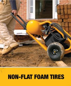 10-in pneumatic wheels allow for easy transportation around the jobsite
