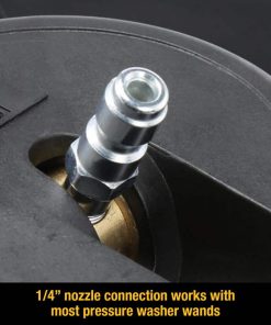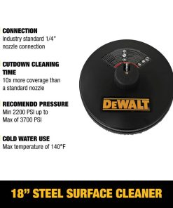 The Surface Scrubber is used for cleaning garage floors£¬ driveways£¬ patios£¬ decks£¬ sidewalks and more. Its 18 in. Dia allows you to cut cleaning time in half on those big jobs. For use with cold water pressure washers rated up to 3700 psi£¬ this unit features high-pressure jets that are great for working near surfaces that you do not want to get wet. This surface cleaner is made out of high quality steel and uses high-pressure rotating jets for a thorough clean that are fast and streak free. The spinning jets help to remove dirt and grime from surfaces with ease.