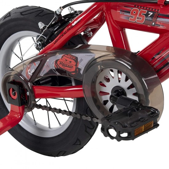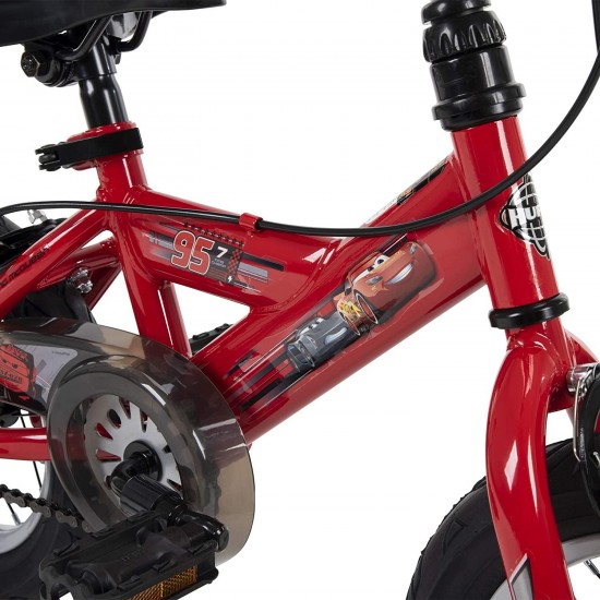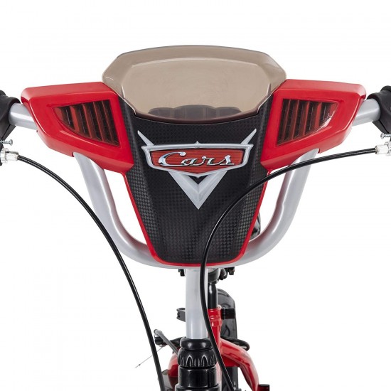 - This sizzling red 12″ Bike is fully decorated with Cars graphics like Lightning McQueen racing into first place; with just one push of a button, the realistic dashboard lights up and the engine roars
