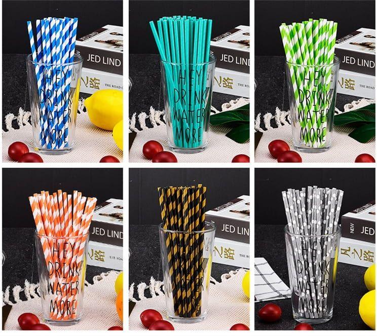 The straw is made of safe paper, and the product has passed FSC, FDA, LFGB and the European Union's standard tests. After use, it completely degrades and meets the hygienic requirements of European and American countries for food safety packaging. It can be used in various places such as home, holiday birthday parties, dessert arrangement, children's DY appliances, etc. Straw length: 195cm hole thickness 0.6cm. Soaking for too long will make it a little soft, but it will not affect the use. The straws are all printed with food grade ink.