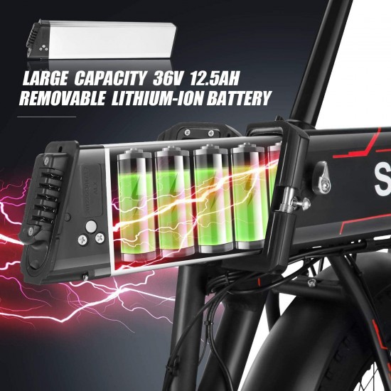 Ebikes for Adults, 20” 4.0 Fat Tire Electric Bike, E Bike Electric Folding Bikes with 500W Motor and 36V/12.5Ah Removable Battery, Electric City/Beach/Snow Bikes-SE2