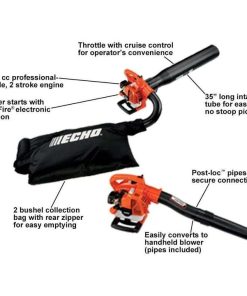 The ECHO ES-250 gas leaf blower offers 3 products in 1 tool: blower, shredder and vacuum. Make quick work of clearing leaves and other waste from your yard by using the versatile lawn blower. This tool includes a bag and a vacuum kit, which is easily converted from a yard blower to a vacuum/shredder.