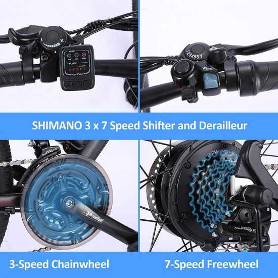 Electric Bike 350W, 27.5/26 Inch Electric Bikes for Adults Mountain Bike, 36V/10.4Ah Removable Battery, 21 Speed Gears, Electric Bicycle 20MPH Speed